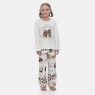 Pijama manga longa com estampa local e calça com estampa corrida, confeccionados em tecido moletinho peluciado (50% algodão / 50% poliéster).