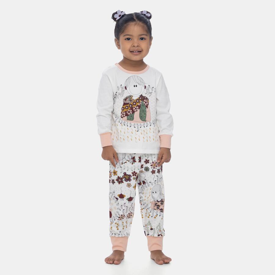 Pijama manga longa e calça com punho em tecido colorido, confeccionados em tecido moletinho peluciado (50% algodão / 50% poliéster).