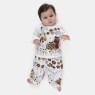 Pijama manga longa com estampa local, tic-tac na gola e calça com estampa corrida, confeccionados em tecido meia-malha 100% algodão.