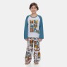 Pijama manga longa com estampa local e calça em tecido colorido, confeccionados em tecido meia-malha 100% algodão.