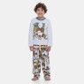 Pijama manga longa com estampa local e calça com estampa corrida, confeccionados em tecido moletinho peluciado (50% algodão / 50% poliéster).