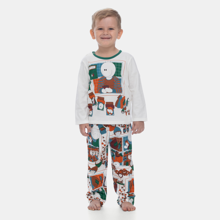 Pijama manga longa com estampa local, tic-tac na gola para facilitar o vestir e calça com estampa corrida, confeccionados em tecido meia-malha 100% algodão.