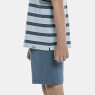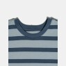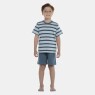 Conjunto pijama manga curta com estampa corrida em listras e detalhe em viés na gola, e bermuda com tecido colorido liso, confeccionados em tecido meia-malha 100% algodão.
