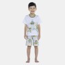 Conjunto pijama manga curta com estampa local e detalhe em viés na gola, e bermuda com estampa corrida, confeccionados em tecido meia-malha 100% algodão.