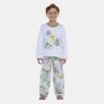 Conjunto pijama manga longa com estampa local e detalhe em viés na gola, e calça com estampa corrida, confeccionados em tecido meia-malha 100% algodão.