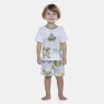 Conjunto pijama manga curta com estampa local, com detalhe em viés e fechamento em tic-tac na gola para facilitar a vestibilidade e bermuda com estampa corrida, confeccionados em tecido meia-malha 100% algodão.