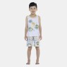 Conjunto pijama regata machão com estampa local e detalhe em viés na gola e nas cavas, e bermuda com estampa corrida, confeccionados em tecido meia-malha 100% algodão.