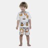 Conjunto pijama manga curta com estampa local, com detalhe em viés e fechamento em tic-tac na gola para facilitar a vestibilidade e bermuda com estampa corrida, confeccionados em tecido meia-malha 100% algodão.