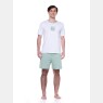 Conjunto pijama manga curta com estampa local e detalhe em viés e short com tecido colorido liso, confeccionados em tecido meia-malha 100% algodão.