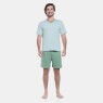 Conjunto manga curta, decote V, bordado e short em tecido colorido, confeccionado em tecido meia-malha 100% algodão.