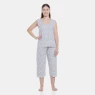 Conjunto regata aberta, com fechamento por botões e corsário com estampa corrida, confeccionados em tecido meia-malha 100% algodão.