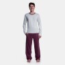 Pijama manga longa em tecido liso e calça com bolsos em tecido colorido, confeccionados em tecido meia-malha 100% algodão.
