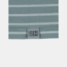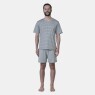 Conjunto manga curta, decote V, em tecido listrado, etiqueta e short em tecido colorido, confeccionados em tecido meia-malha 100% algodão.