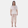 Pijama manga curta com estampa local e corsário com estampa corrida, confeccionados em tecido meia-malha 100% algodão.