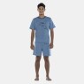 Conjunto pijama manga curta com estampa local e short com tecido colorido, confeccionados em tecido meia-malha 100% algodão.