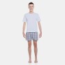 Conjunto manga curta, em tecido liso meia-malha 100% algodão e short com padronagem xadrez, botões, em tecido tricoline 100% algodão.