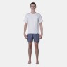 Conjunto manga curta, etiqueta, em tecido liso meia-malha 100% algodão e short com padronagem xadrez, botão, em tecido tricoline 100% algodão.