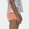 Pijama de alça, franzido, com estampa corrida em tecido meia-malha 100% algodão e short confeccionado em tecido colorido cotton (96% algodão / 4% Elastano).