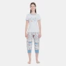 Conjunto manga curta baby-look com estampa local confeccionada em tecido cotton (96% algodão / 4% elastano) e corsário com punho, estampa corrida em tecido meia-malha 100% algodão.