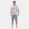 Pijama manga curta com estampa corrida e short em tecido listrado, confeccionados em tecido meia-malha 100% algodão.