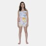 Pijama de alça com estampa local confeccionado em tecido cotton (96% algodão / 4% Elastano) e short com estampa corrida em tecido meia-malha 100% algodão.