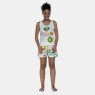 Pijama regata com estampa local e short com estampa corrida, confeccionados em tecido meia-malha 100% algodão.