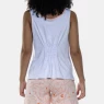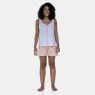 Pijama regata em tecido liso com abertura por botões, efeito trançador nas costas e short com estampa corrida, confeccionados em tecido meia-malha 100% algodão.