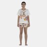 Conjunto pijama manga curta com estampa local e short com estampa corrida, confeccionados em tecido meia-malha 100% algodão.