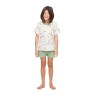 Conjunto manga curta com estampa corrida e short em tecido colorido, confeccionados em tecido meia-malha 100% algodão.