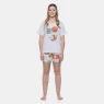 Pijama manga curta com estampa local e short com estampa corrida, confeccionados em tecido meia-malha 100% algodão.