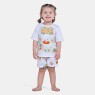 Pijama manga curta com estampa local, tic-tac na gola para facilitar o vestir e short com estampa corrida, confeccionados em tecido meia-malha 100% algodão.