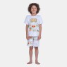 Pijama manga curta com estampa local e bermuda com estampa corrida, confeccionados em tecido meia-malha 100% algodão.