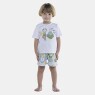 Pijama manga curta com estampa local, tic-tac para facilitar o vestir e short com estampas corrida, confeccionados em tecido meia-malha 100% algodão.