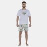 Conjunto pijama manga curta com estampa local e short em tecido com estampa corrida, confeccionados em tecido meia-malha 100% algodão.
