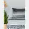 Edredom tamanho solteiro, sendo uma face em tecido listrado e a outra em tecido colorido, ambos meia-malha 100% algodão e enchimento 100% poliéster. Não acompanha outras fronhas avulsas, almofadas, lençol, boneco e outros acessórios expostos na imagem. Imagem meramente ilustrativa.