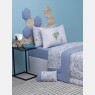 Edredom tamanho solteiro, sendo uma face com tecido estampado com personagem e a outra com tecido colorido, ambos meia-malha 100% algodão e enchimento 100% poliéster. Não acompanha outras fronhas avulsas, almofadas, lençol, boneco e outros acessórios expostos na imagem. Imagem meramente ilustrativa.