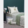 Edredom tamanho solteiro, sendo uma face com tecido estampado com personagem e a outra com tecido colorido, ambos meia-malha 100% algodão e enchimento 100% poliéster. Não acompanha outras fronhas avulsas, almofadas, lençol, boneco e outros acessórios expostos na imagem. Imagem meramente ilustrativa.