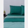 Edredom tamanho king, sendo uma face em tecido listrado e a outra em tecido colorido, ambos meia-malha 100% algodão e enchimento 100% poliéster. Não acompanha outras fronhas avulsas, almofadas, lençol, boneco e outros acessórios expostos na imagem. Imagem meramente ilustrativa.