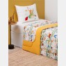 Edredom tamanho solteiro, sendo uma face em tecido estampado com personagem e a outra em tecido colorido, ambos meia-malha 100% algodão e enchimento 100% poliéster. Não acompanha outras fronhas avulsas, almofadas, lençol, boneco e outros acessórios expostos na imagem. Imagem meramente ilustrativa.
