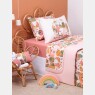 Edredom tamanho queen, sendo uma face em tecido estampado com personagem e a outra em tecido colorido, ambos meia-malha 100% algodão e enchimento 100% poliéster. Não acompanha outras fronhas avulsas, almofadas, lençol, boneco e outros acessórios expostos na imagem. Imagem meramente ilustrativa.