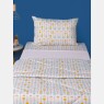 Edredom tamanho solteiro, sendo os dois lados em tecido estampada sem personagem, ambos meia-malha 100% algodão e enchimento 100% poliéster. Não acompanha outras fronhas avulsas, almofadas, lençol, boneco e outros acessórios expostos na imagem. Imagem meramente ilustrativa.