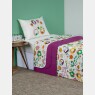 Edredom tamanho berço, sendo uma das faces em tecido estampado com personagem e a outra em tecido colorido, ambos meia-malha 100% algodão e enchimento 100% poliéster. Não acompanha outras fronhas avulsas, almofadas, lençol, boneco e outros acessórios expostos na imagem. Imagem meramente ilustrativa.