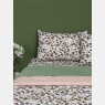 Edredom tamanho queen, sendo uma das faces em tecido estampado e a outra em tecido colorido, ambos meia-malha 100% algodão e enchimento 100% poliéster. Não acompanham fronhas avulsas, almofadas, lençol e outros acessórios expostos na imagem. Imagem meramente ilustrativa.