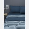 Edredom tamanho queen, sendo uma das faces em tecido listrado e a outra em tecido colorido liso, confeccionado em tecido meia-malha 100% algodão e enchimento 100% poliéster. Não acompanham outras fronhas avulsas, almofadas, lençol, boneco e outros acessórios expostos na imagem. Imagem meramente ilustrativa.