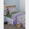 Edredom tamanho solteiro, sendo uma das faces em tecido com estampa corrida com personagem, e a outra em tecido colorido liso, confeccionado em tecido meia-malha 100% algodão e enchimento 100% poliéster. Não acompanham outras fronhas avulsas, almofadas, lençol, boneco e outros acessórios expostos na imagem. Imagem meramente ilustrativa.