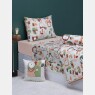 Jogo de lençol, tamanho solteiro, composto por 1 lençol com elástico em tecido colorido meia-malha 100% algodão, 1 sobre lençol estampado com personagem em tecido meia-malha 100% algodão e uma fronha com estampa corrida em tecido meia-malha 100% algodão. Não acompanha, outras fronhas avulsas, almofadas e outros acessórios expostos na imagem. Imagem meramente ilustrativa.