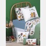 Jogo de lençol, tamanho solteiro, composto por 1 lençol com elástico em tecido colorido meia-malha 100% algodão, 1 sobre lençol estampado com personagem em tecido meia-malha 100% algodão e uma fronha com estampa local em tecido meia-malha 100% algodão. A fronha que compõem o jogo de lençol são expostas na foto sempre à frente das fronhas avulsas. Não acompanha, outras fronhas avulsas, almofadas e outros acessórios expostos na imagem. Imagem meramente ilustrativa.