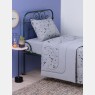 Jogo de lençol, tamanho solteiro, composto por 1 lençol com elástico em tecido liso meia-malha mescla (88% algodão / 12% poliéster), 1 sobre lençol estampado com personagem em tecido meia-malha mescla (88% algodão / 12% poliéster) e 1 fronha com estampa corrida em tecido meia-malha mescla (88% algodão / 12% poliéster).