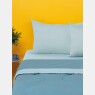 Jogo de lençol, tamanho casal, composto por 1 lençol com elástico em tecido colorido meia-malha 100% algodão, 1 sobre lençol em tecido listrado meia-malha 100% algodão e duas fronhas em tecido colorido meia-malha 100% algodão. Não acompanha, outras fronhas avulsas, almofadas e outros acessórios expostos na imagem. Imagem meramente ilustrativa.