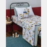 Lençol, tamanho berço, com elástico em tecido estampado com personagem em meia-malha 100% algodão e 2 fronhas, uma com estampa local e uma em tecido colorido, ambos meia-malha 100% algodão.. Não acompanha, outras fronhas avulsas, almofadas e outros acessórios expostos na imagem. Imagem meramente ilustrativa.